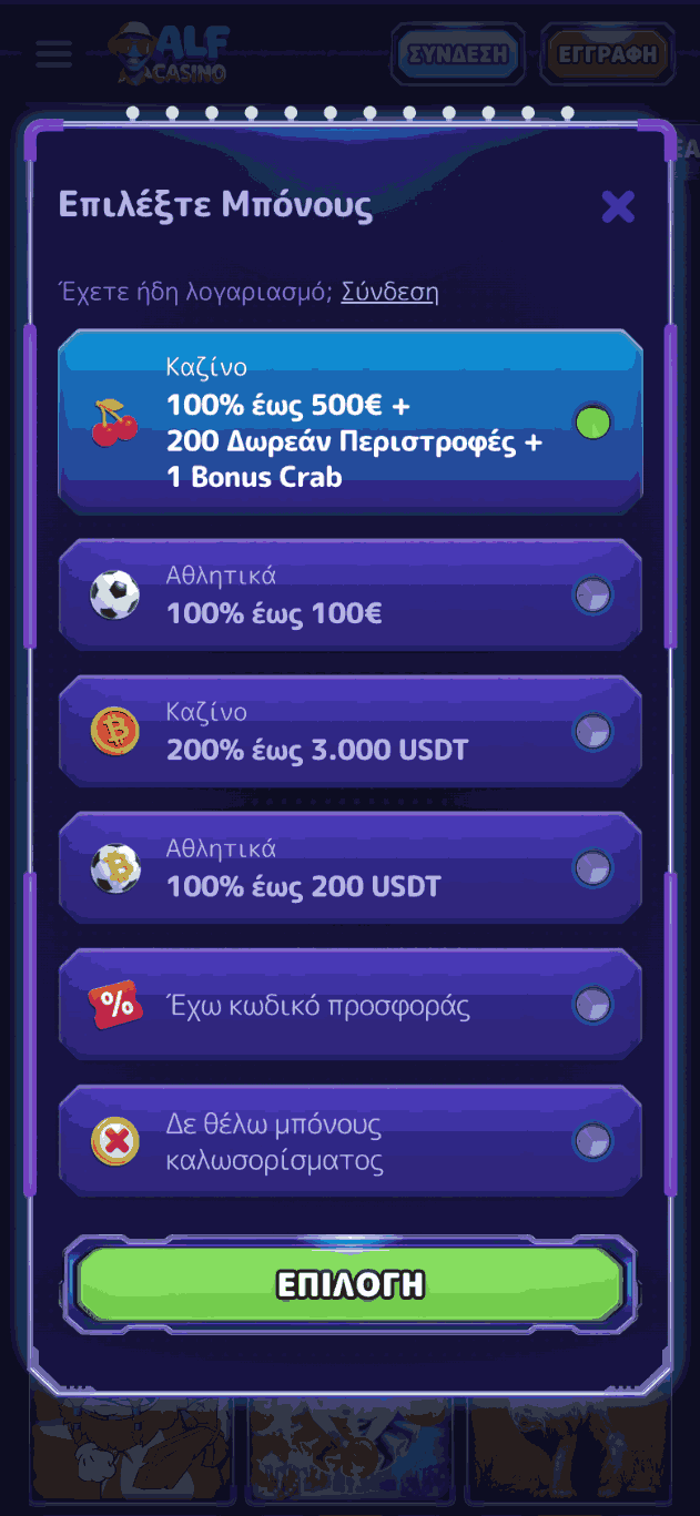 Το AlfCasino δείχνει ικανό να καλύψει ακόμα και έναν απαιτητικό παίκτη από την Ελλάδα με τα χαρακτηριστικά του.