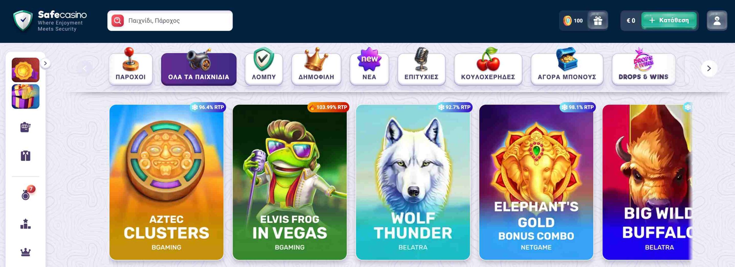Δεν μπορούμε να παραβλέψουμε τη μεγάλη γκάμα σε παιχνίδια, που μπορείτε να φιλτράρετε με αρκετούς τρόπους στην πλατφόρμα του Safe Casino.