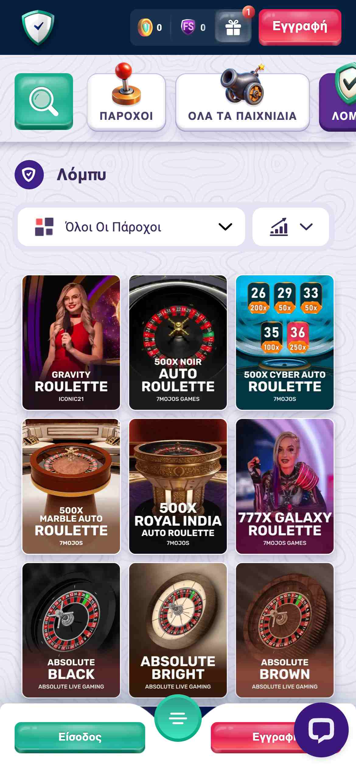 | Live Ρουλέτα | 80+ | Lucky Streak, Absolute Live Gaming, Vivo Gaming, 7 Mojos κ.α. |