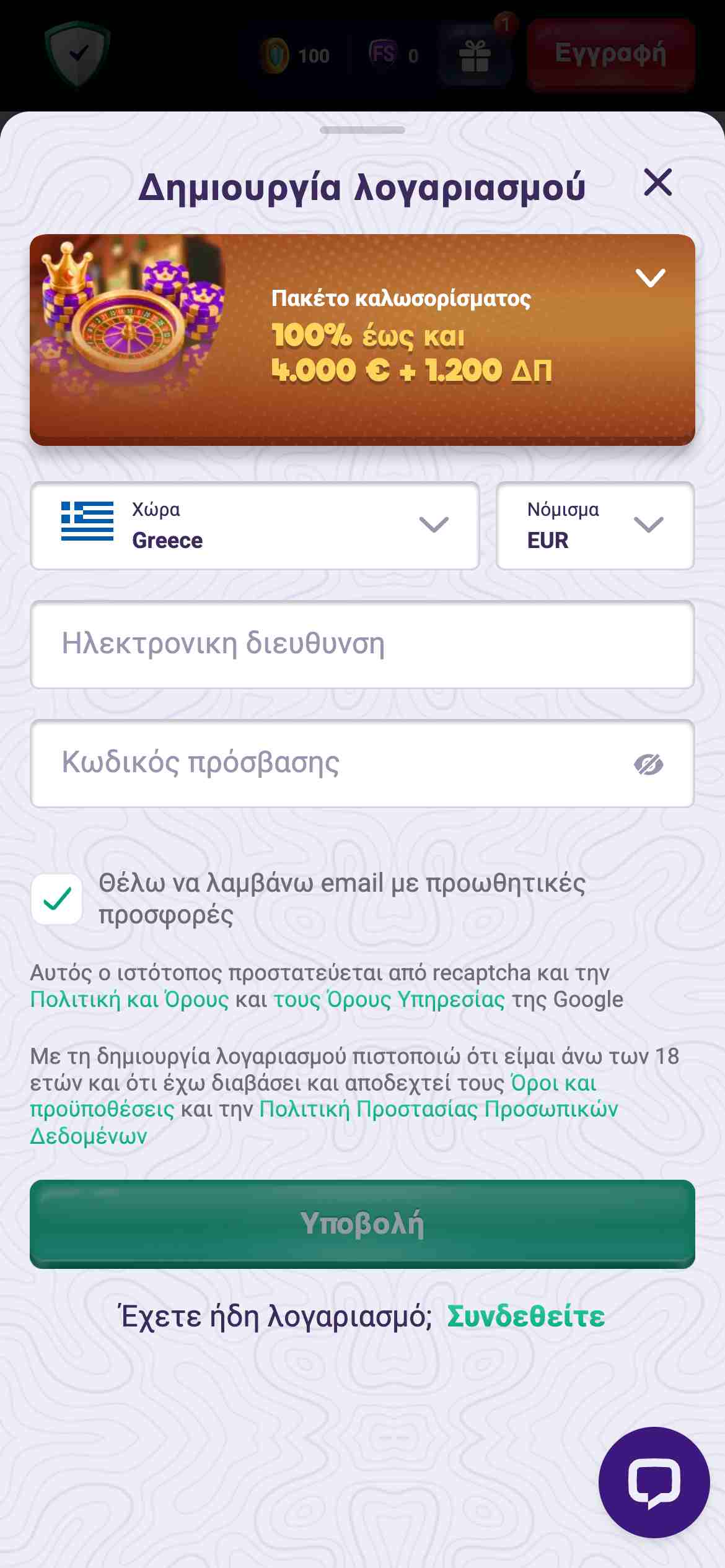 Σε περίπτωση που θέλετε να λαμβάνετε προωθητικές ενέργειες του καζίνο, μπορείτε να πατήσετε στο σχετικό πεδίο.