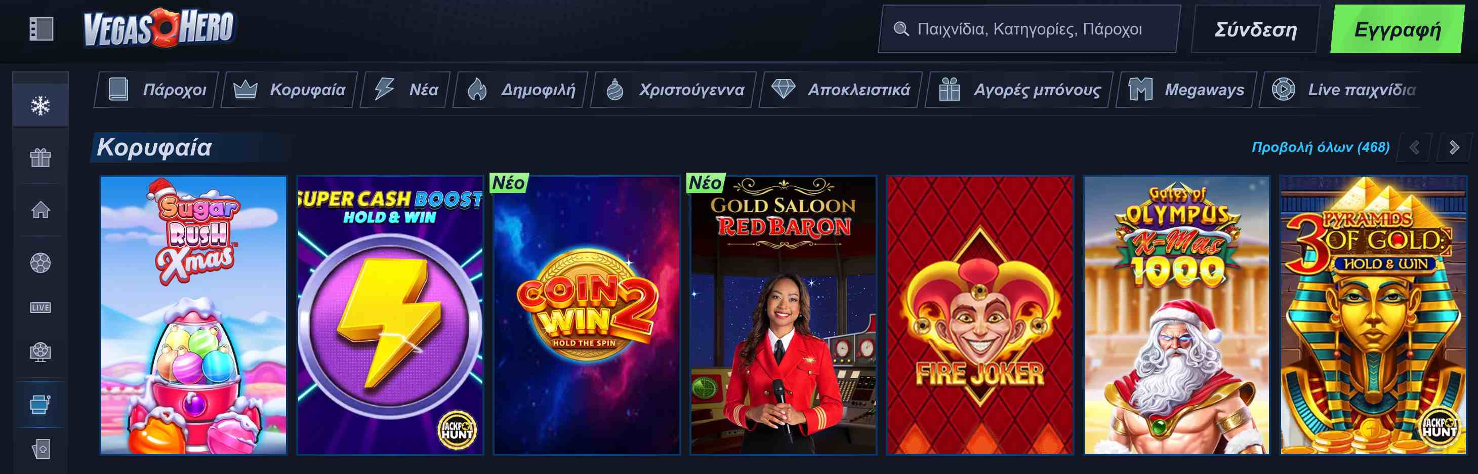 Πολύ θετική εντύπωση μας έκανε η βιβλιοθήκη καζίνο του VegasHero, αφού η σελίδα συνολικά φιλοξενεί χιλιάδες παιχνίδια.