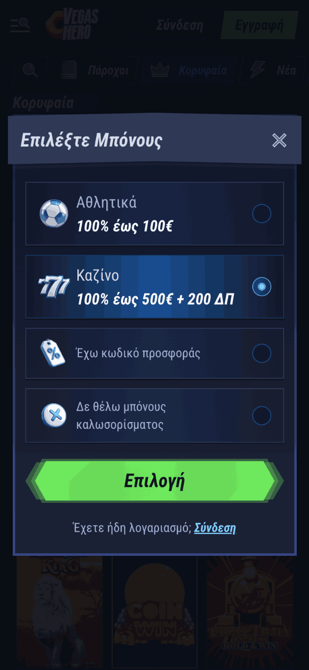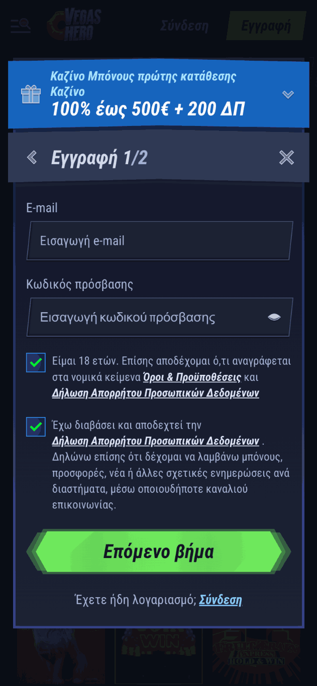 Η εγγραφή στο VegasHero μπορεί να γίνει αρκετά γρήγορα, είτε είστε συνδεδεμένοι από υπολογιστή είτε από κινητό.